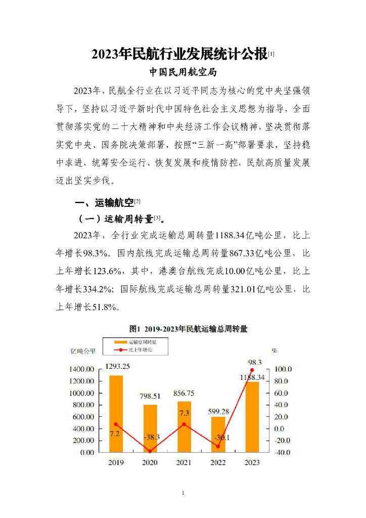 中国民用航空局:2023年民航行业发展统计公报.pdf