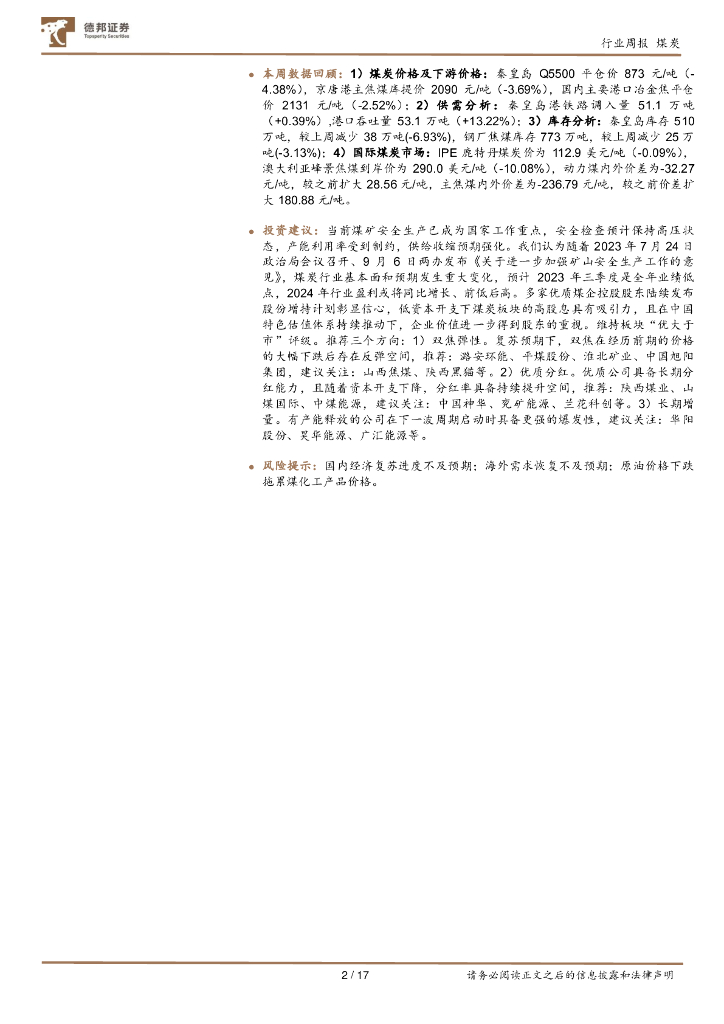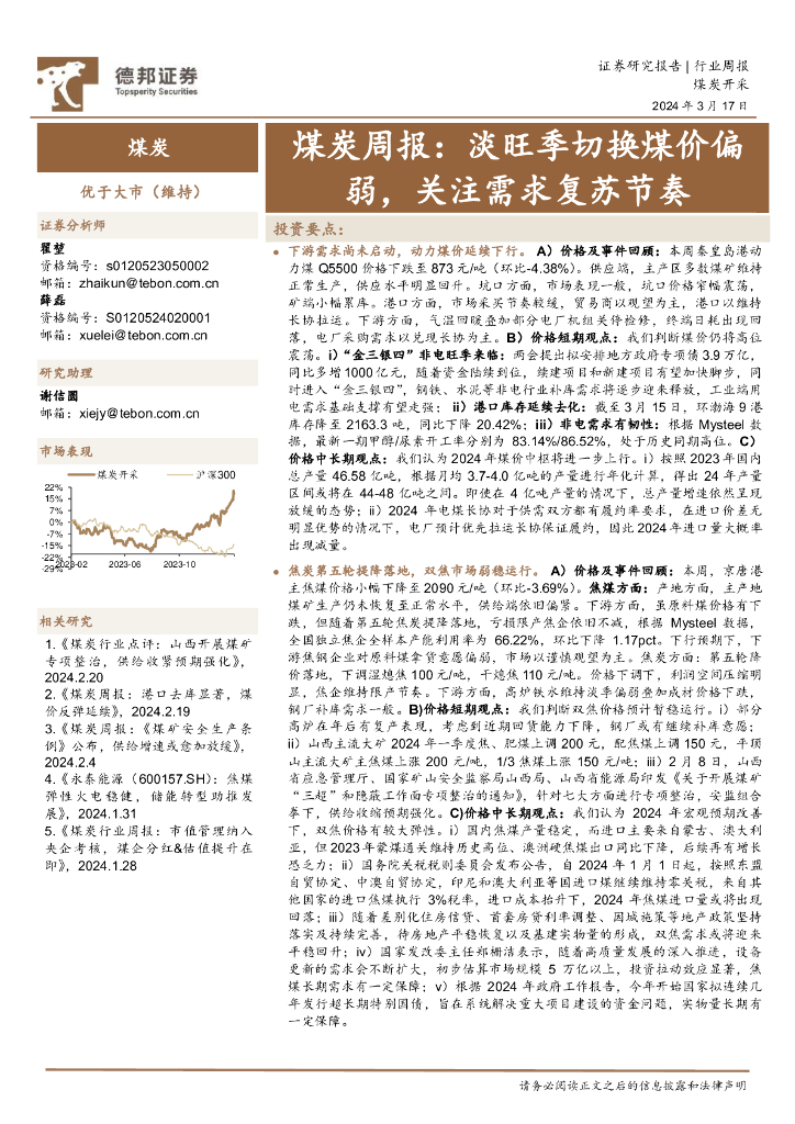德邦证券:煤炭周报:淡旺季切换煤价偏弱,关注需求复苏节奏.pdf