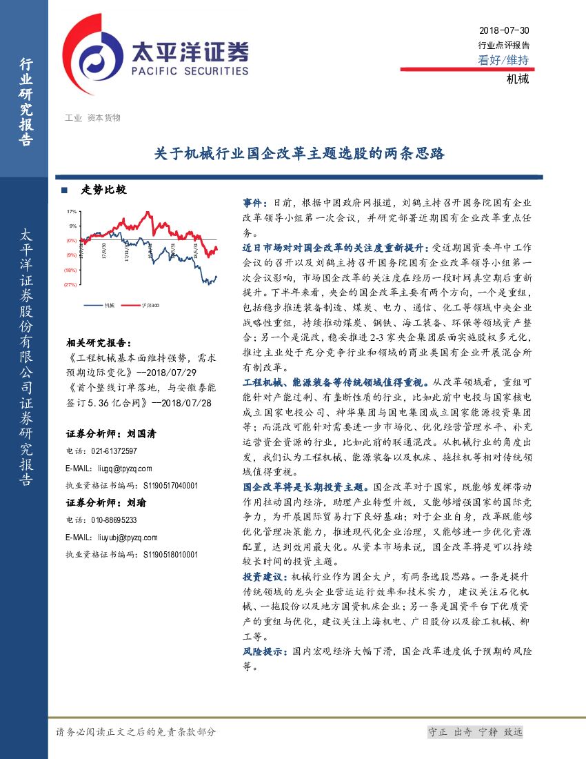 太平洋证券:机械行业点评报告:关于机械行业国企改革主题选股的两条思路.pdf