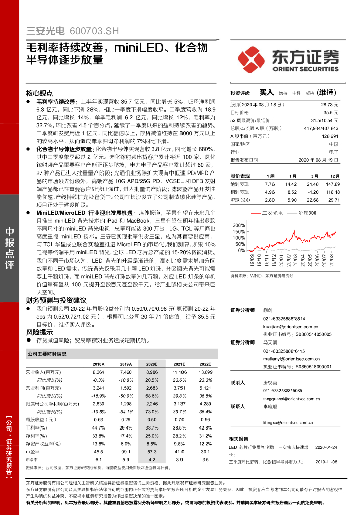 东方证券:三安光电(600703)-毛利率持续改善,miniLED、化合物半导体逐步放量.pdf