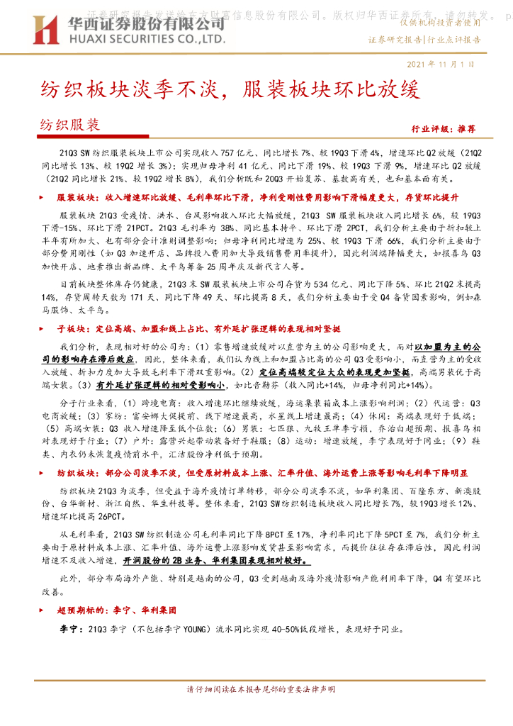 华西证券:纺织服装:纺织板块淡季不淡,服装板块环比放缓.pdf