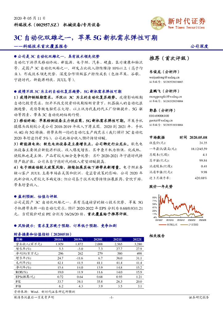 新时代证券:科瑞技术首次覆盖报告:3C自动化双雄之一,苹果5G新机需求弹性可期.pdf