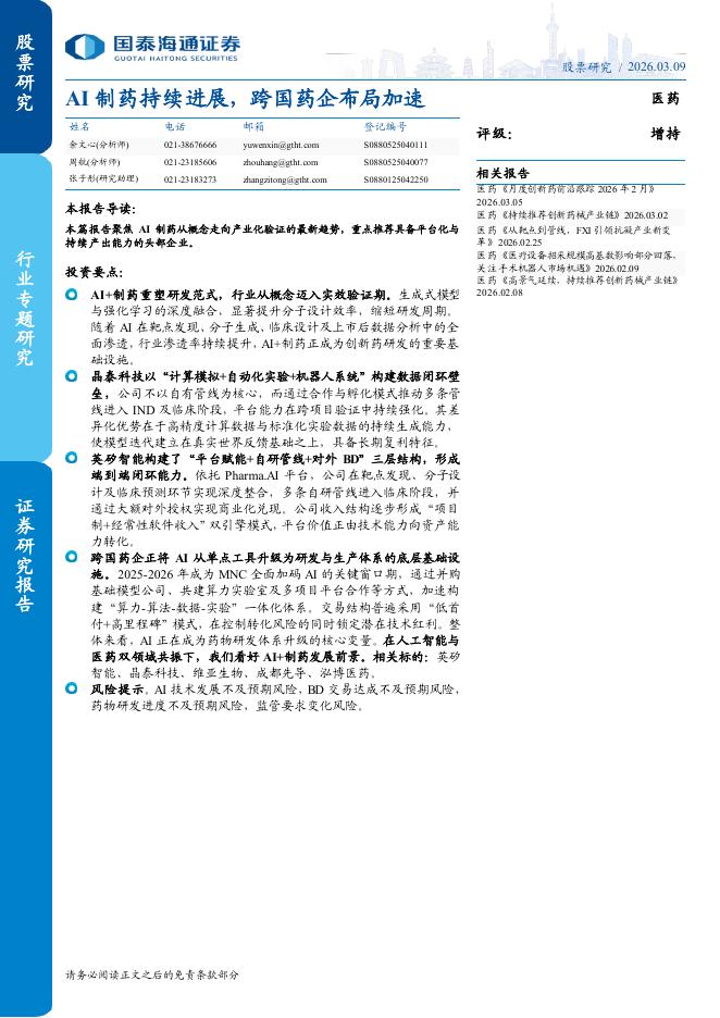 国泰海通证券:AI制药持续进展,跨国药企布局加速.pdf