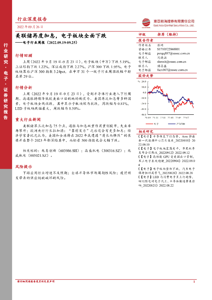 东亚前海证券:电子行业周报:美联储再度加息,电子板块全面下跌.pdf