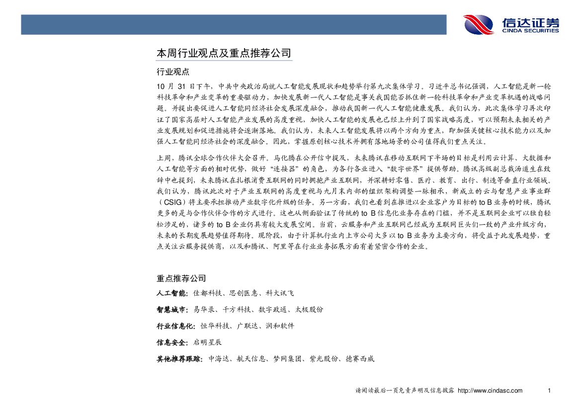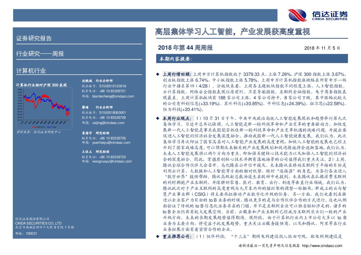 信达证券:计算机行业周报:高层集体学习人工智能,产业发展获高度重视.pdf