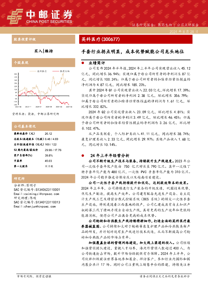 中邮证券:英科医疗(300677)-手套行业拐点明显,成本优势赋能公司龙头地位.pdf
