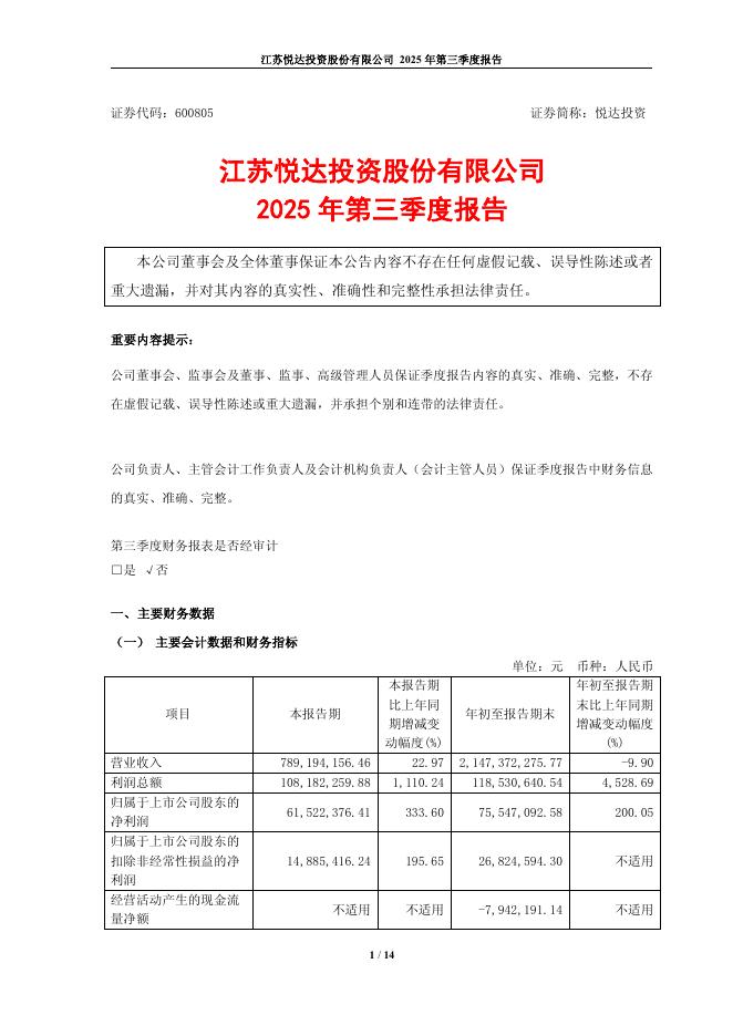 600805-悦达投资:悦达投资2025年第三季度报告.pdf