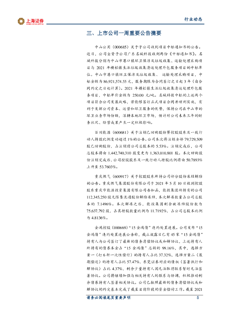 东吴证券:环保行业跟踪周报:【高能环境】受益金属价格上涨,【龙净环保】矿山绿电贡献业绩,重视水固红利价值