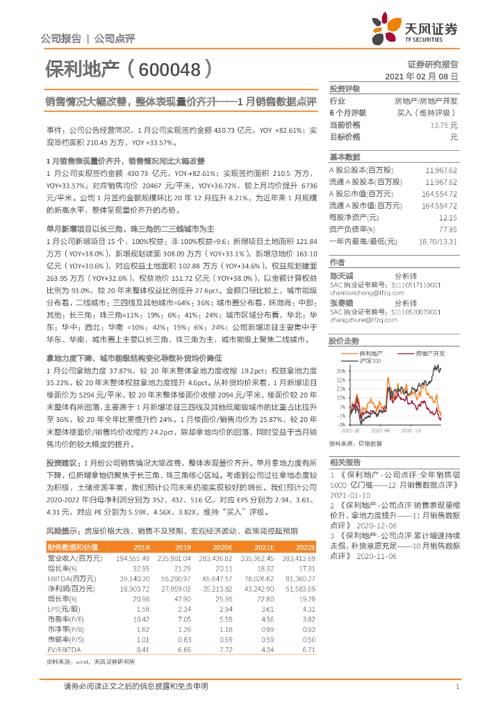 天风证券:保利地产(600048)-1月销售数据点评:销售情况大幅改善,整体表现量价齐升.pdf