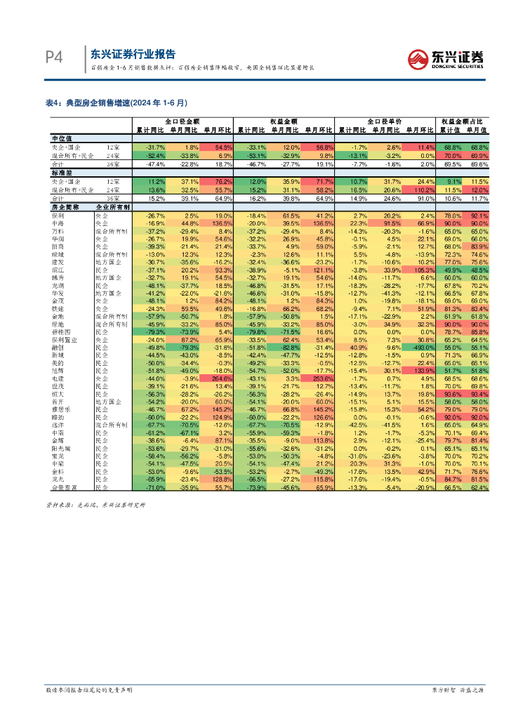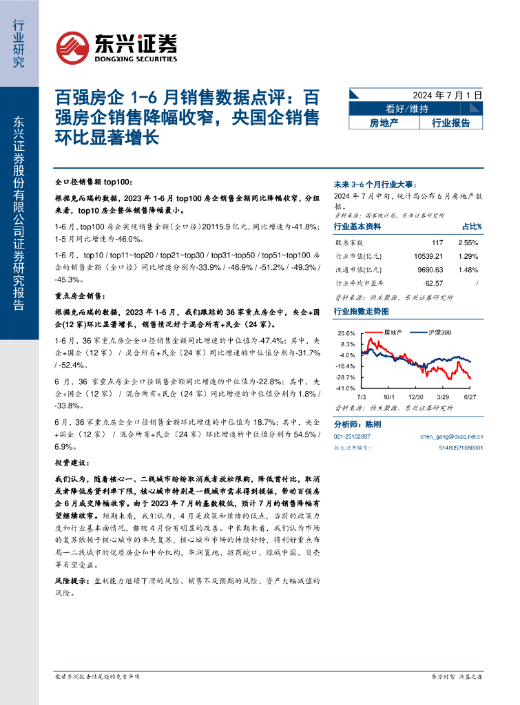 东兴证券:百强房企1-6月销售数据点评:百强房企销售降幅收窄,央国企销售环比显著增长.pdf