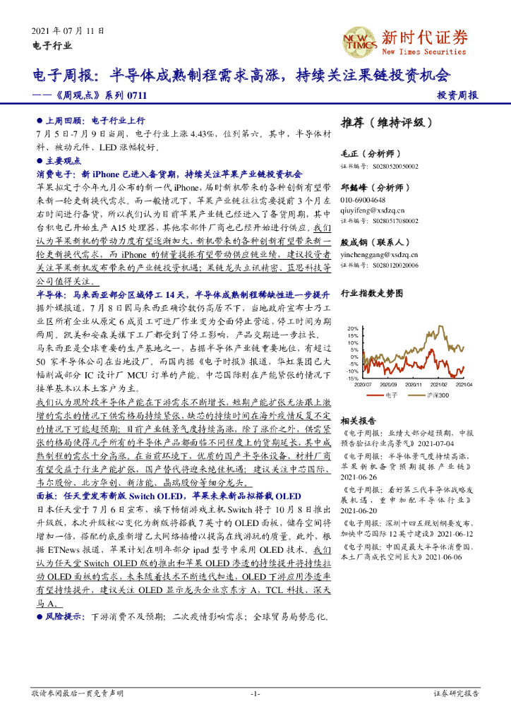 新时代证券:电子周报:半导体成熟制程需求高涨,持续关注果链投资机会-《周观点》系列.pdf