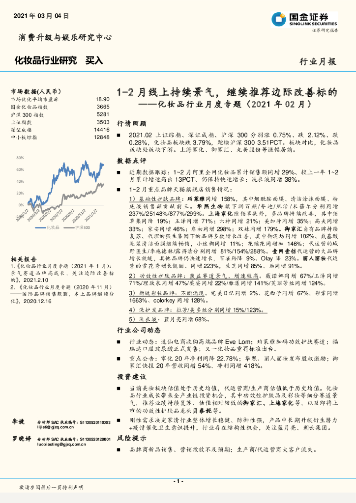 国金证券:化妆品行业月度专题(2021年02月):1-2月线上持续景气,继续推荐边际改善标的.pdf