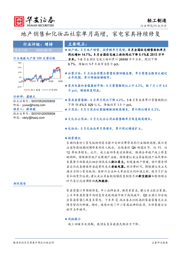 华安证券:轻工制造:地产销售和化妆品社零单月高增,家电家具持续修复.pdf