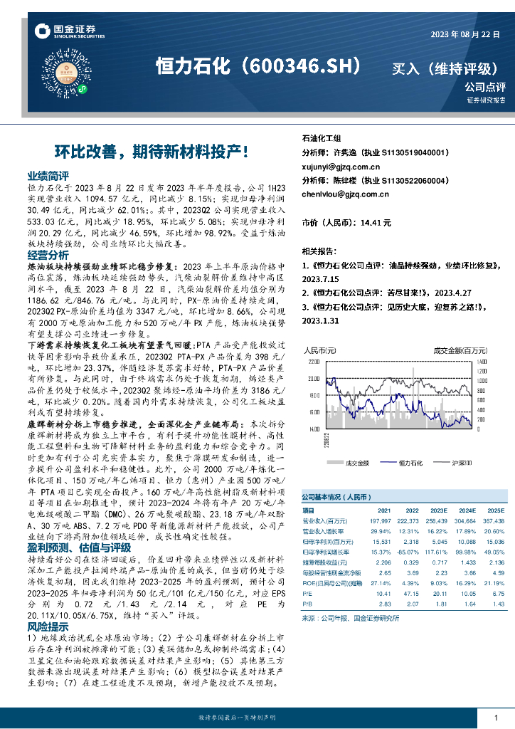 国金证券:恒力石化(600346)-环比改善,期待新材料投产!.pdf