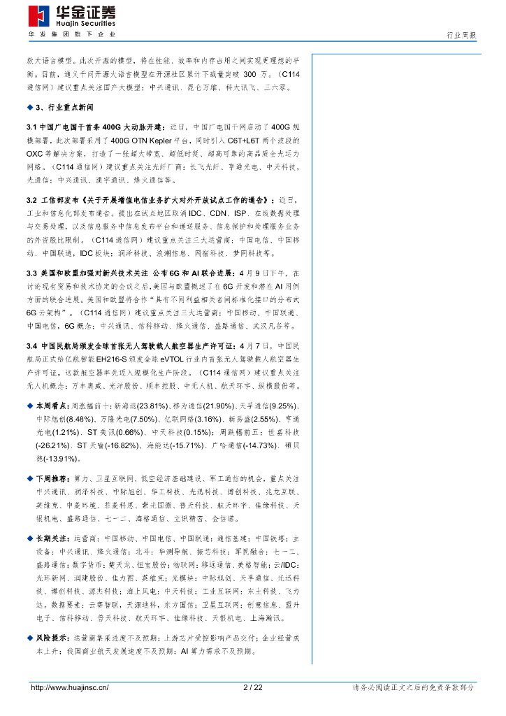 华金证券:通信行业周报:eVTOL进入规模生产,增值电信业务扩大开放.pdf