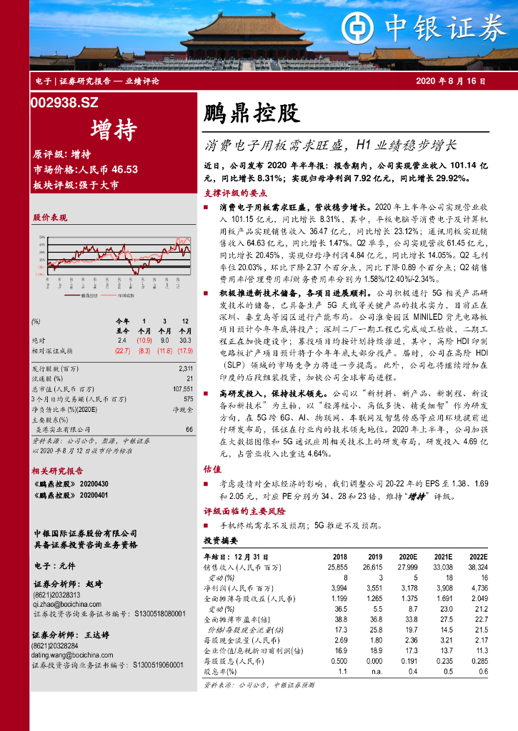 中银证券:鹏鼎控股(002938)-消费电子用板需求旺盛,H1业绩稳步增长.pdf
