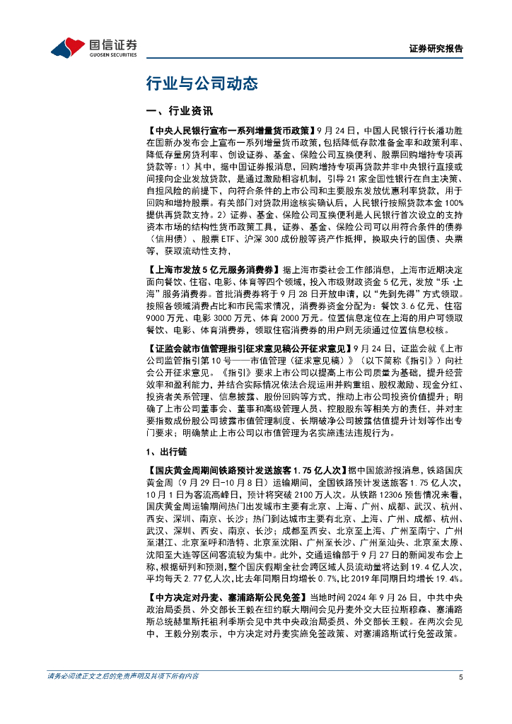 国信证券:社服行业10月投资策略:双节出游韧性增长,Q4兼顾高景气方向与周期预期修复