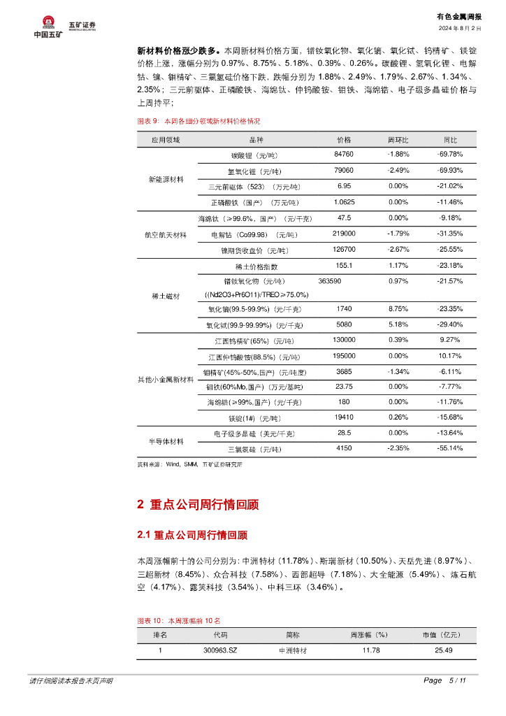 五矿证券:有色金属行业周报:国家发改委和财政部:大幅提高新能源汽车以旧换新补贴标准.pdf
