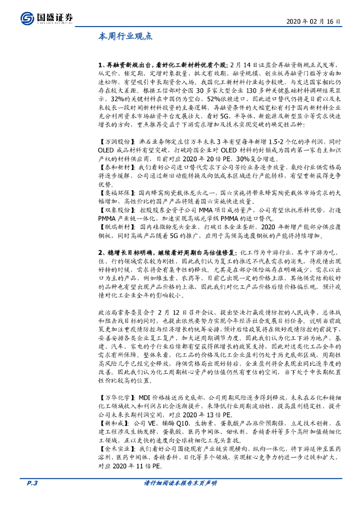 国盛证券:化工行业周报:再融资新规利好新材料优质个股,稳增长促进化工核心资产价值重估.pdf