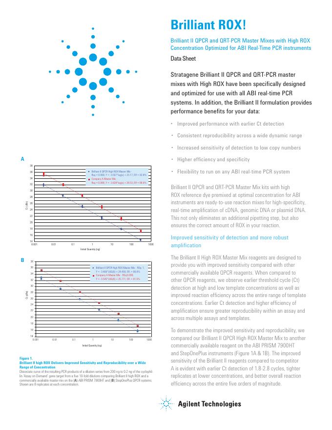 Agilent Brilliant II QPCR and QRT-PCR Master Mixes with High ROX Concentration Optimized for ABI Real-Time PCR instruments 数据手册.pdf
