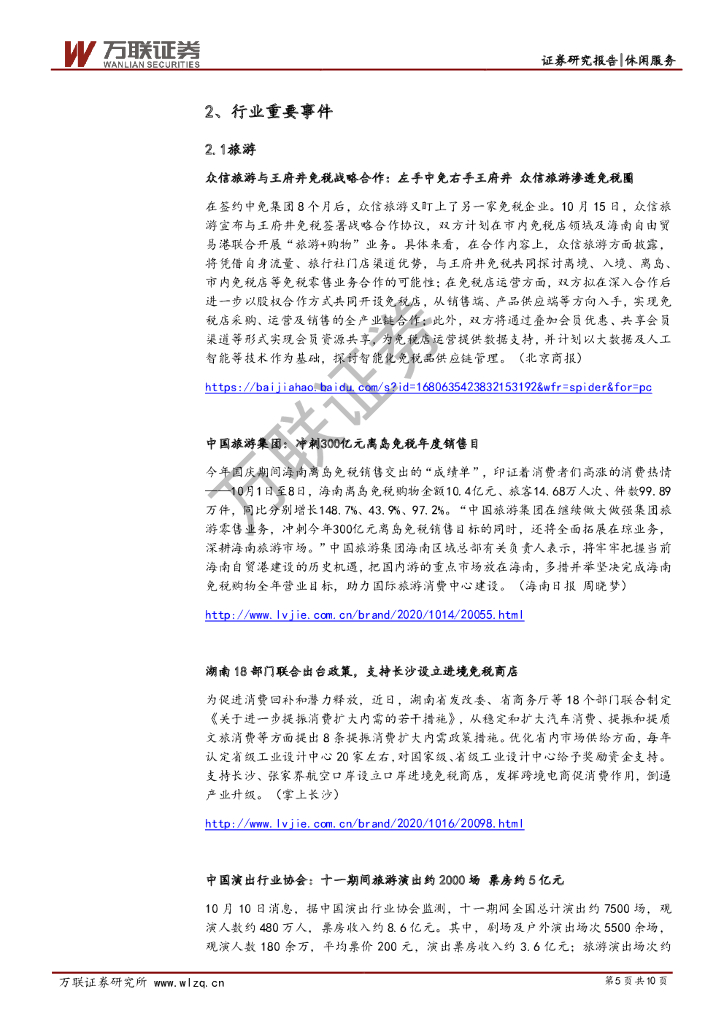 万联证券:休闲服务行业周观点报告:众信旅游与王府井免税战略合作,国考招录+6.62%.pdf
