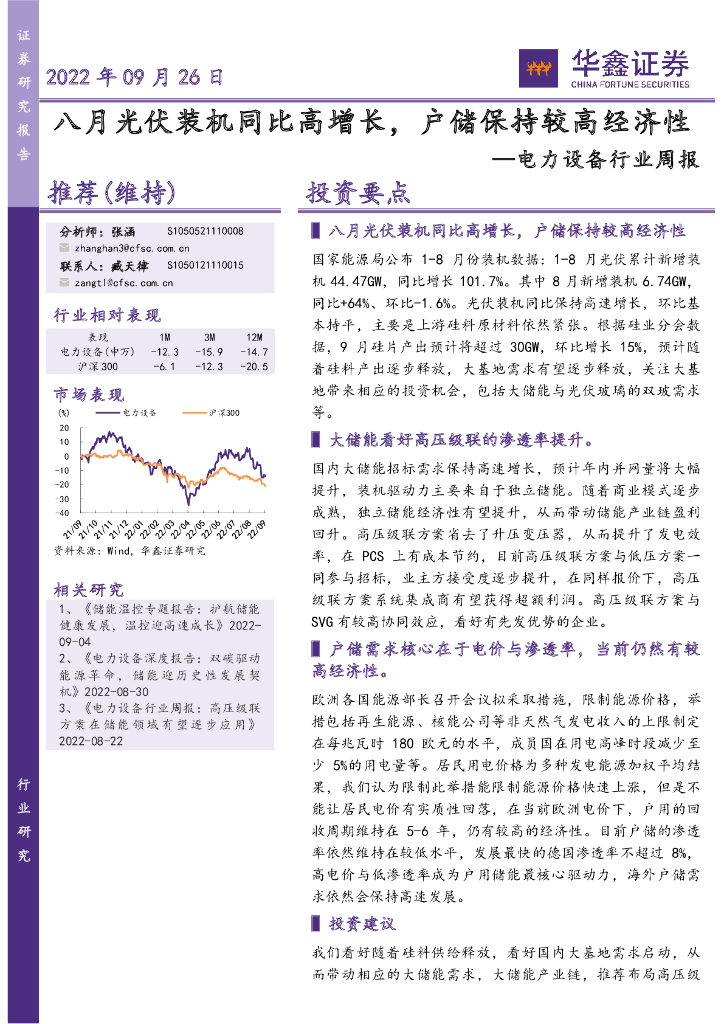 华鑫证券:电力设备行业周报:八月光伏装机同比高增长,户储保持较高经济性.pdf