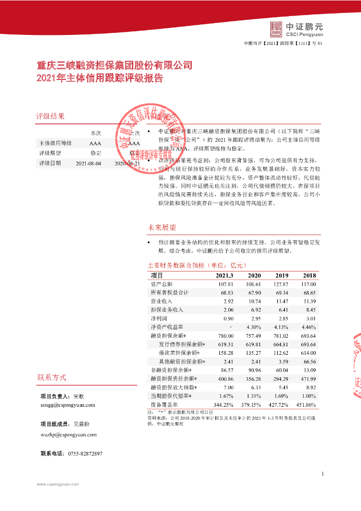 鹏元:重庆三峡融资担保集团股份有限公司2021年主体评级报告.pdf