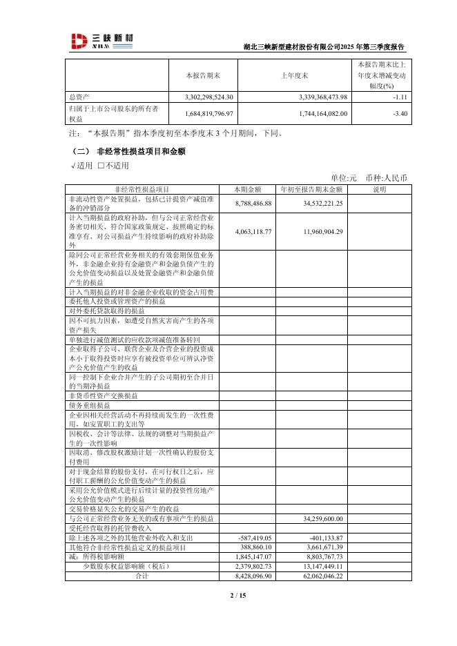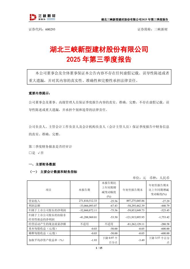 600293-三峡新材:湖北三峡新型建材股份有限公司2025年第三季度报告.pdf
