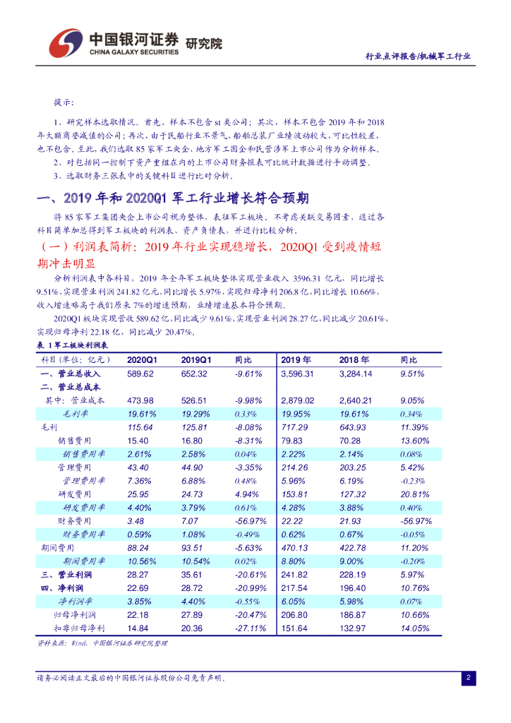 中国银河:军工行业2019年和2020Q1业绩总结:疫情扰动不改全年增长预期,看好板块Q2的补偿性增长.pdf
