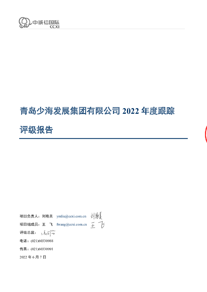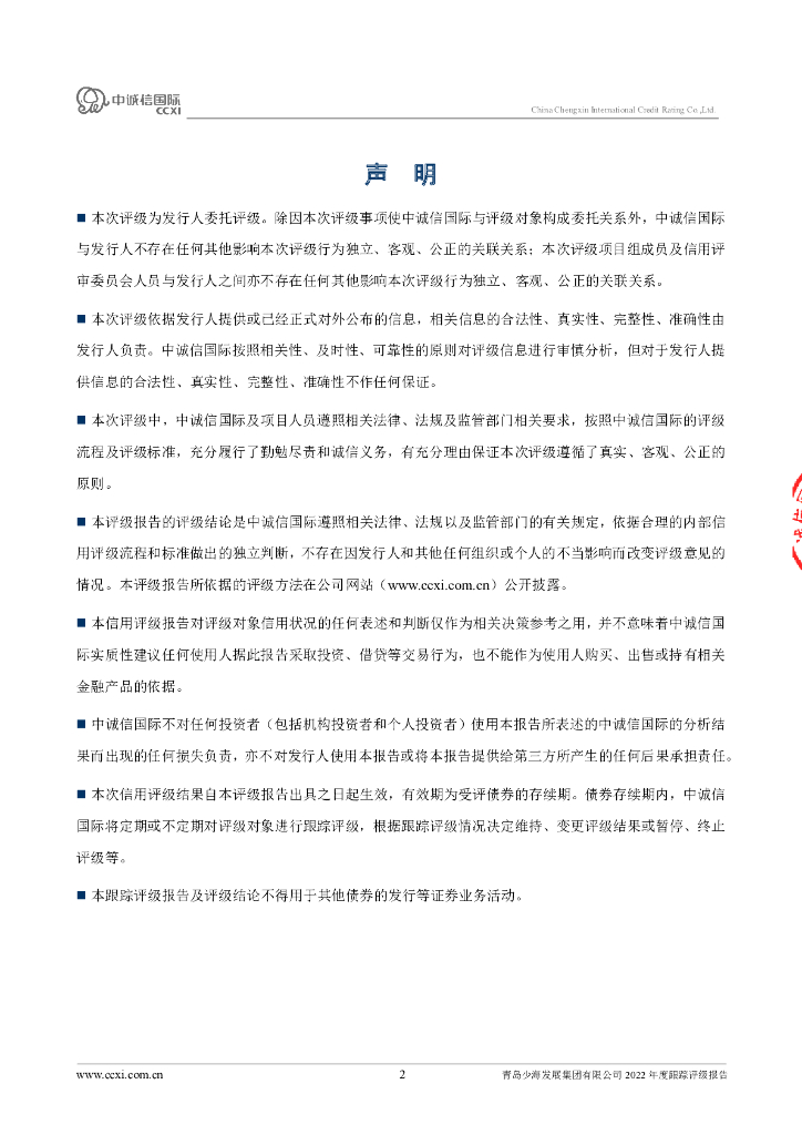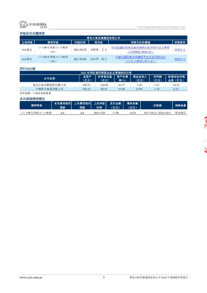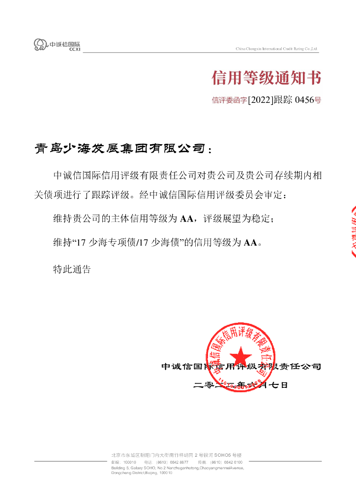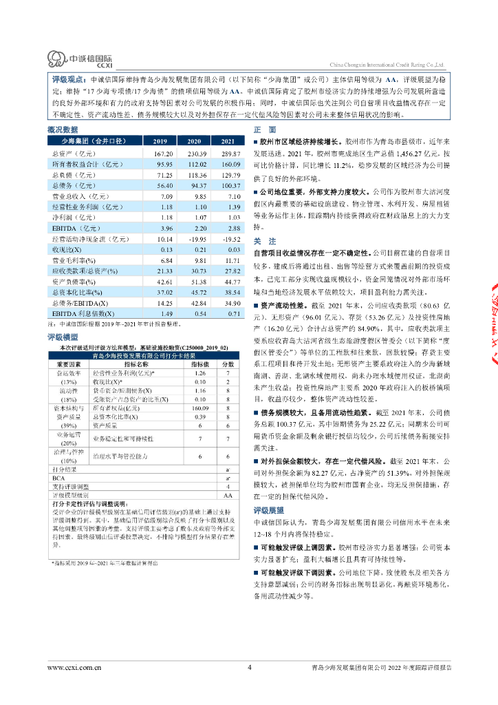 中诚信:青岛少海发展集团有限公司2022年度跟踪评级报告.pdf