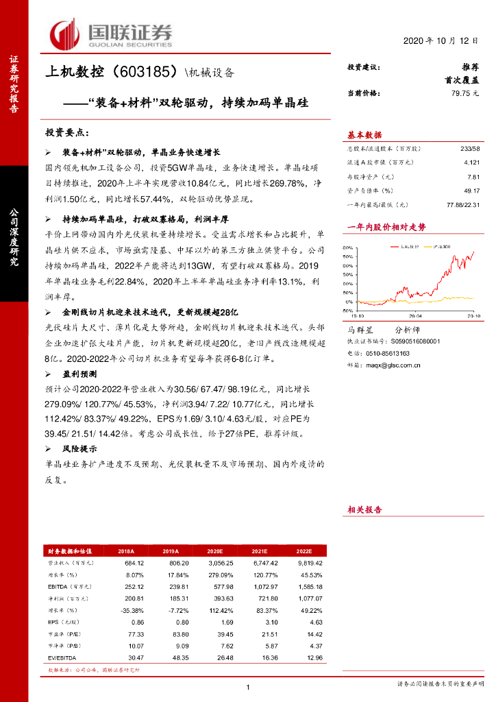 国联证券:上机数控(603185)-“装备+材料”双轮驱动,持续加码单晶硅.pdf