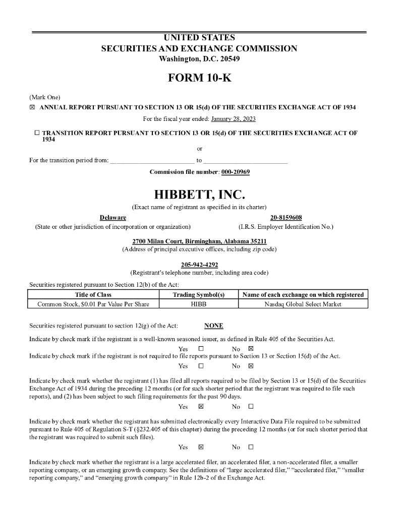 Hibbett Sports, Inc.(HIBB)2023财年年度报告(英文版).pdf