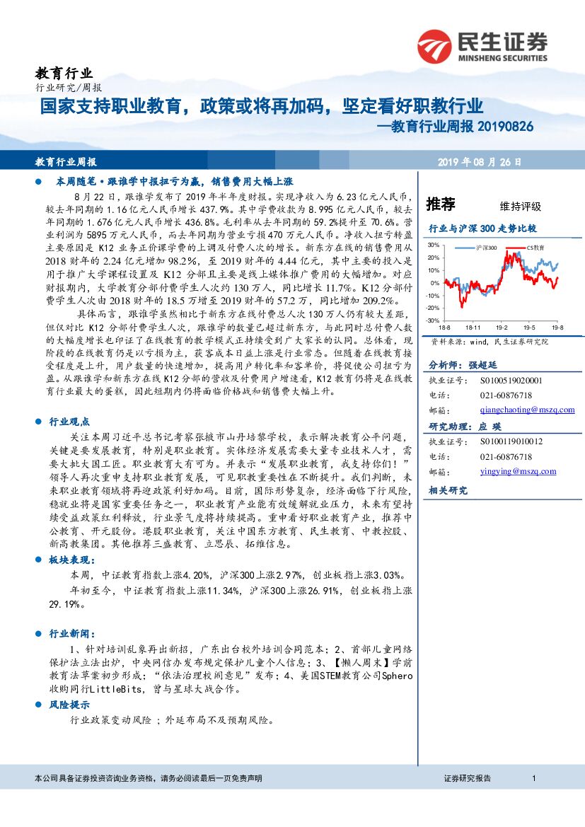 民生证券:教育行业周报:国家支持职业教育,政策或将再加码,坚定看好职教行业.pdf