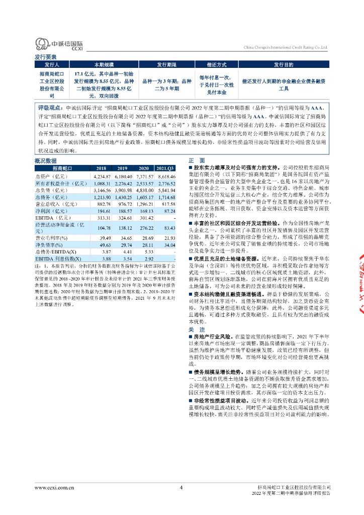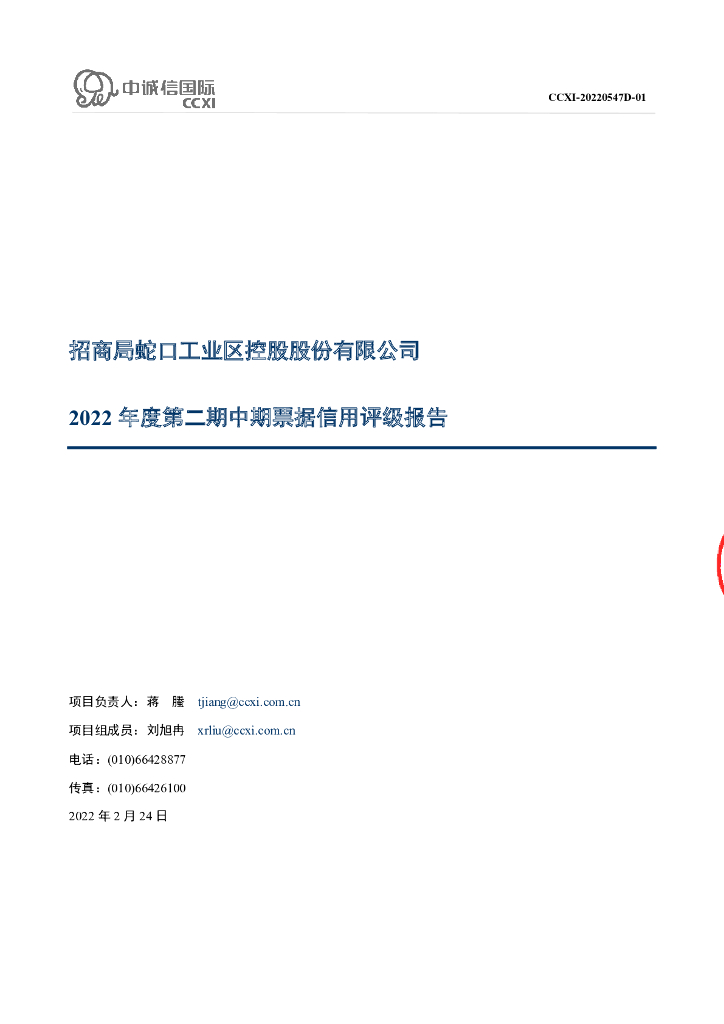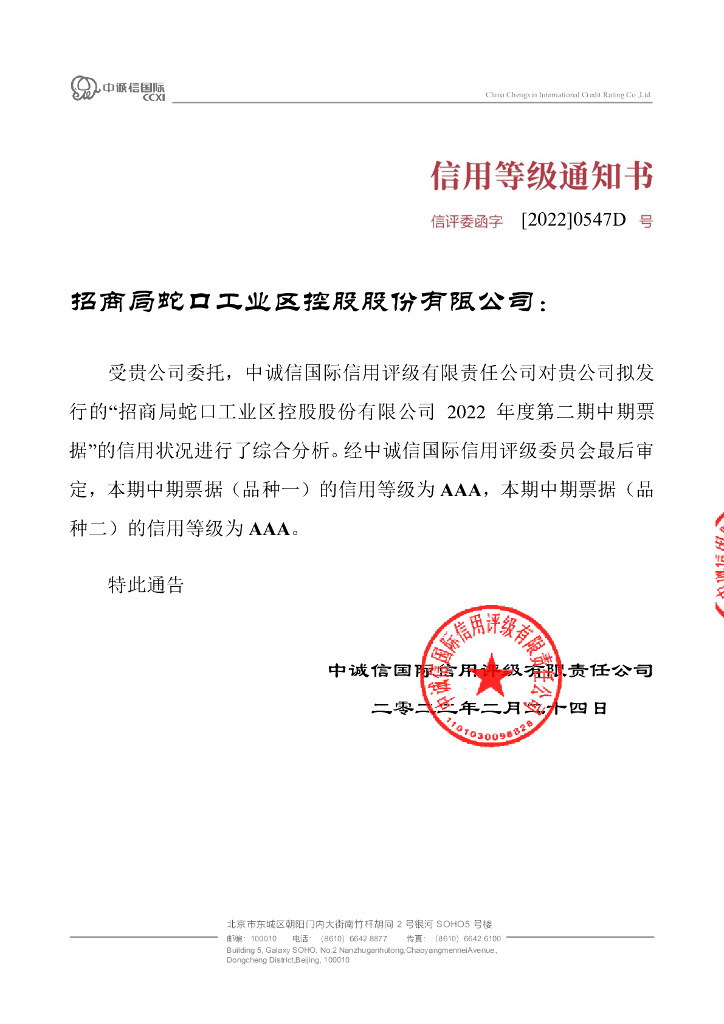 中诚信:招商局蛇口工业区控股股份有限公司2022年度第二期中期票据信用评级报告.pdf
