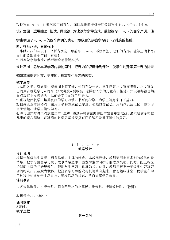 新人教版一年级上册语文第2单元汉语拼音教案、教学反思(含园地).doc