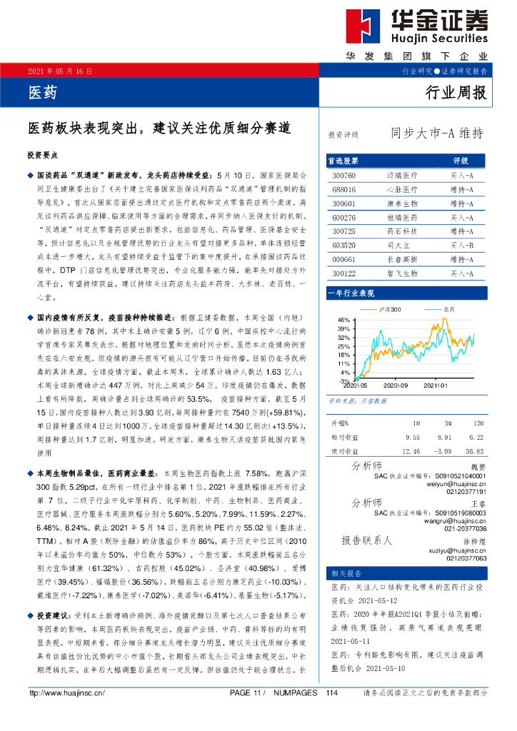 华金证券:医药行业周报:医药板块表现突出,建议关注优质细分赛道.pdf