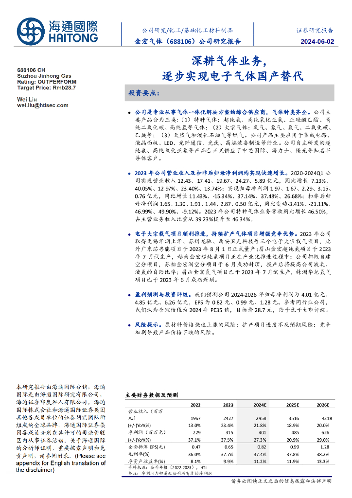 海通国际:金宏气体(688106)-深耕气体业务,逐步实现电子气体国产替代.pdf