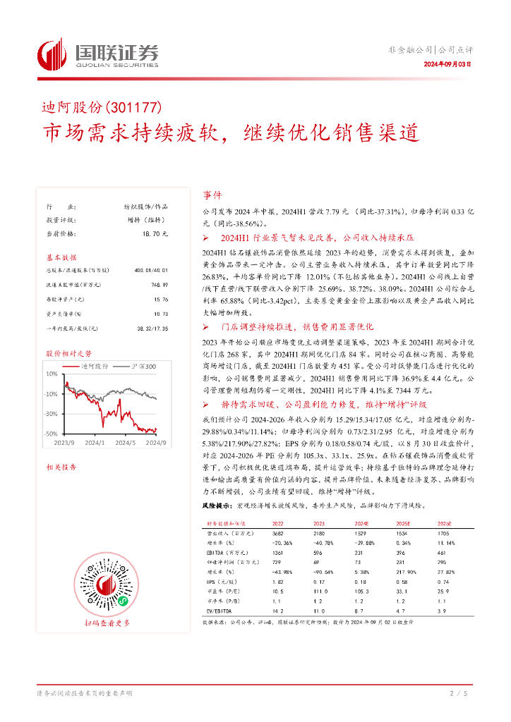 国联证券:迪阿股份(301177)-市场需求持续疲软,继续优化销售渠道.pdf