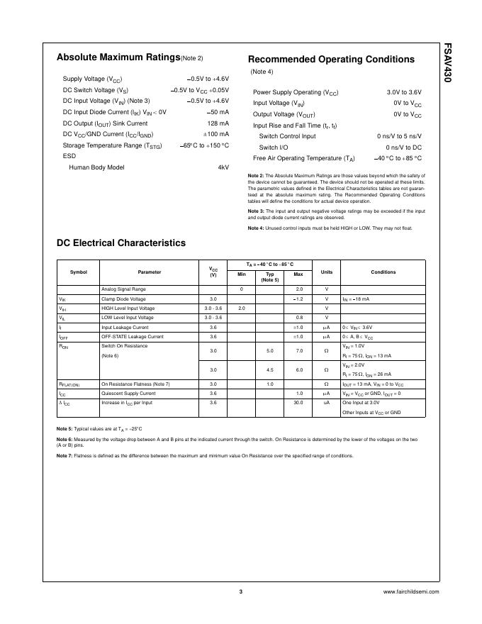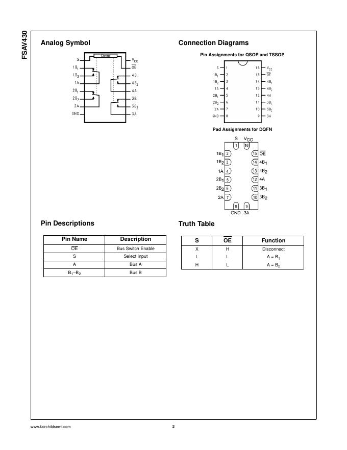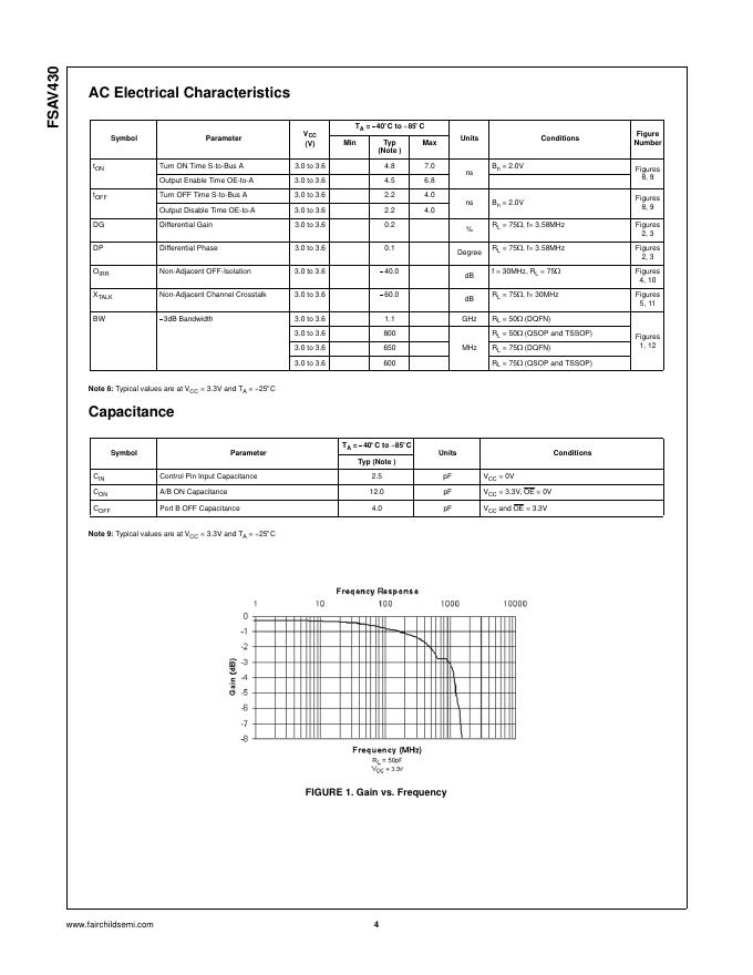 FAIRCHILD FSAV430 Low Voltage 1.1GHz 4 Channel 2:1 Video Switch 数据手册.pdf