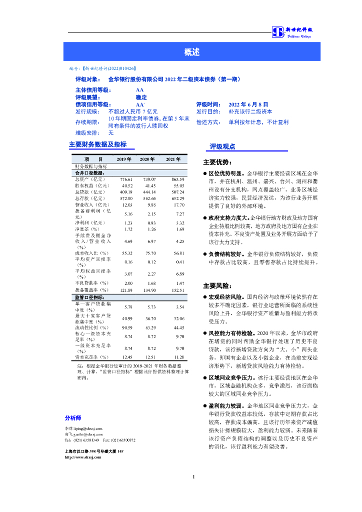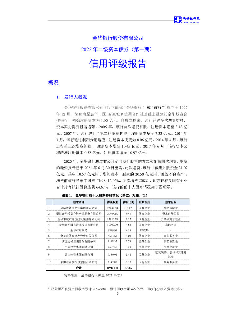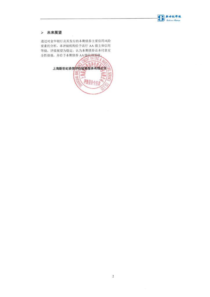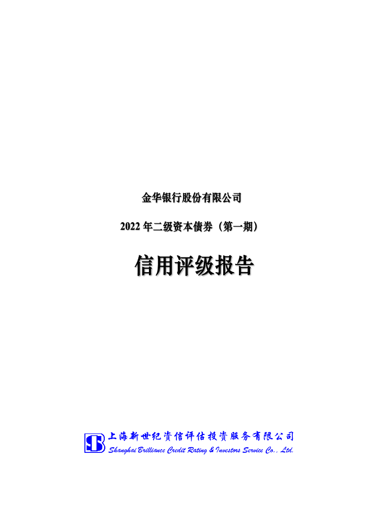新世纪:金华银行股份有限公司2022年二级资本债券(第一期)信用评级报告及跟踪评级安排说明.pdf