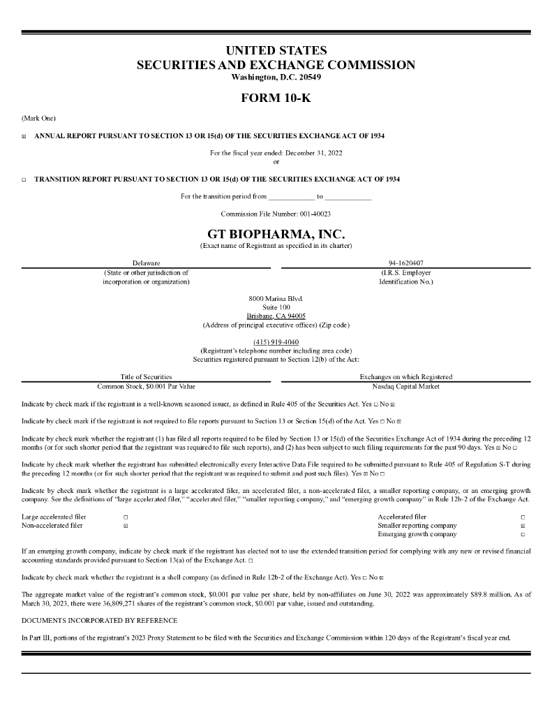 GT Biopharma, Inc.(GTBP)2022财年年度报告(英文版).pdf
