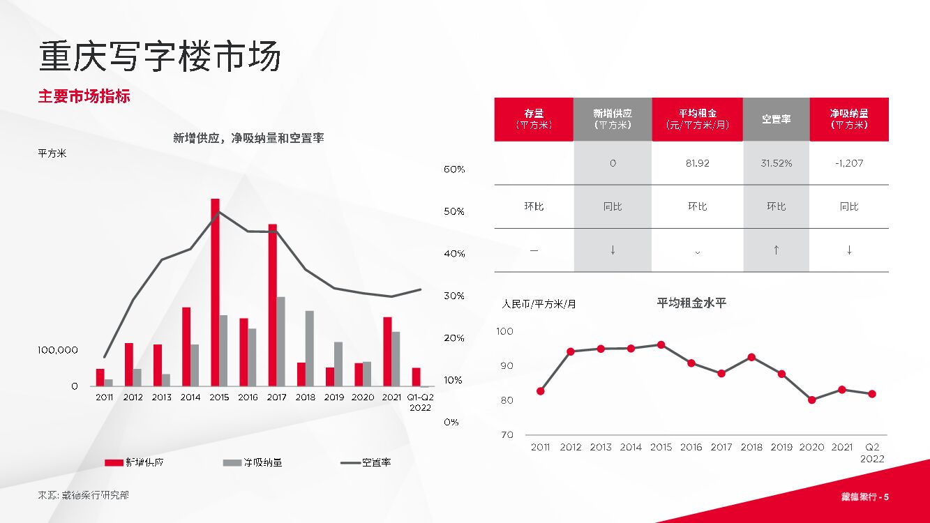 戴德梁行:2022年第二季度重庆写字楼与零售市场概况.pdf