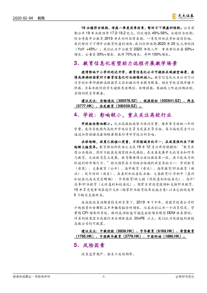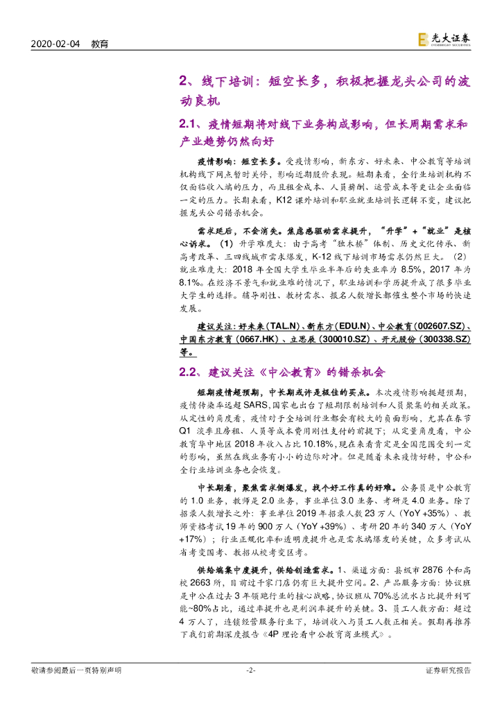 光大证券:教育行业重大事项点评24之新型肺炎疫情影响:在线教育有望受益,短空长多建议把握中公等培训龙头错杀良机.pdf