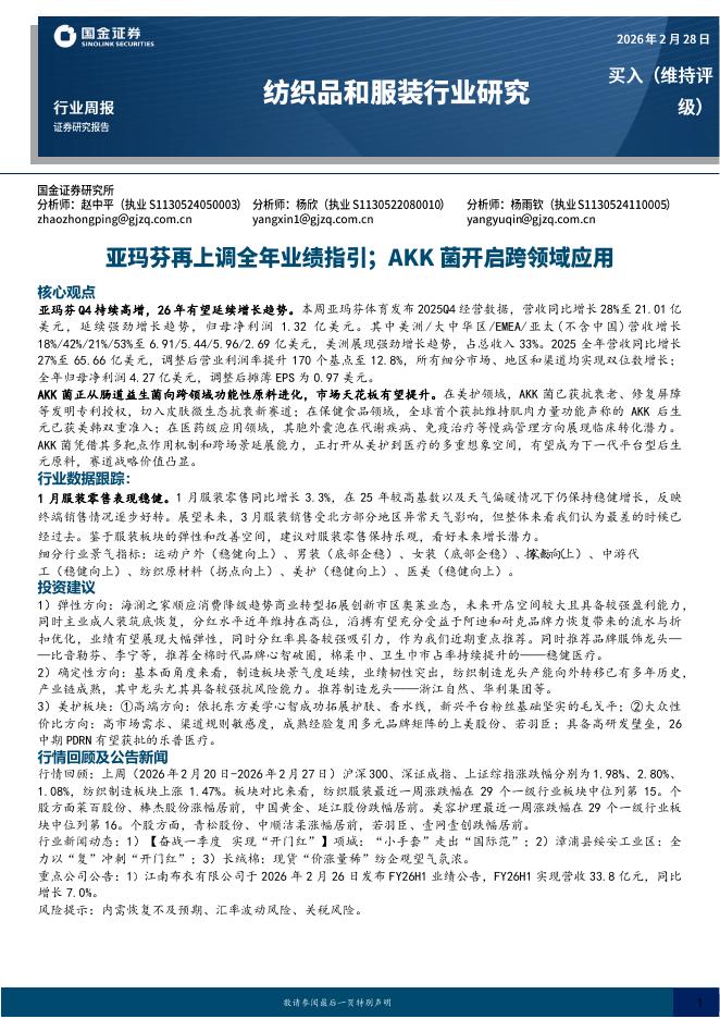 国金证券:纺织品和服装行业研究:亚玛芬再上调全年业绩指引;AKK菌开启跨领域应用.pdf