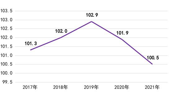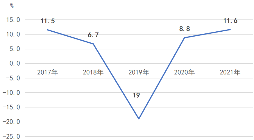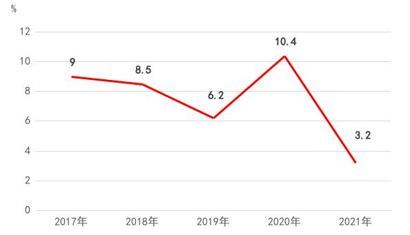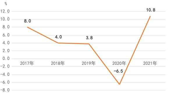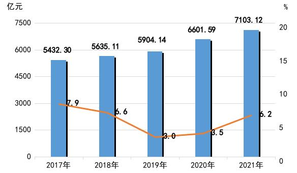 图6 2017-2021年一般公共预算收入与一般公共预算支出增长速度