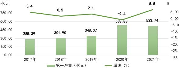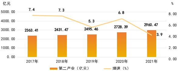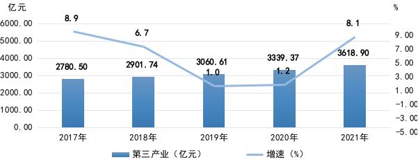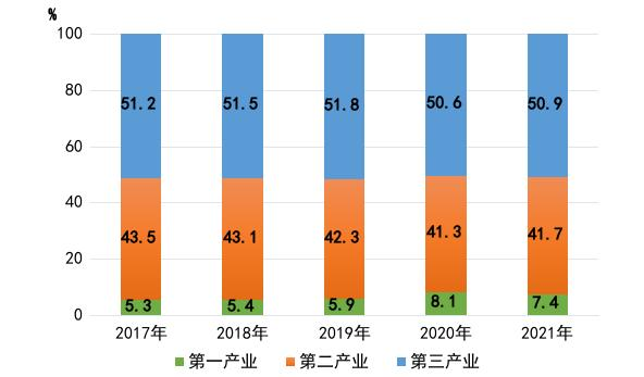 图2 2017-2021年三次产业增加值占地区生产总值比重