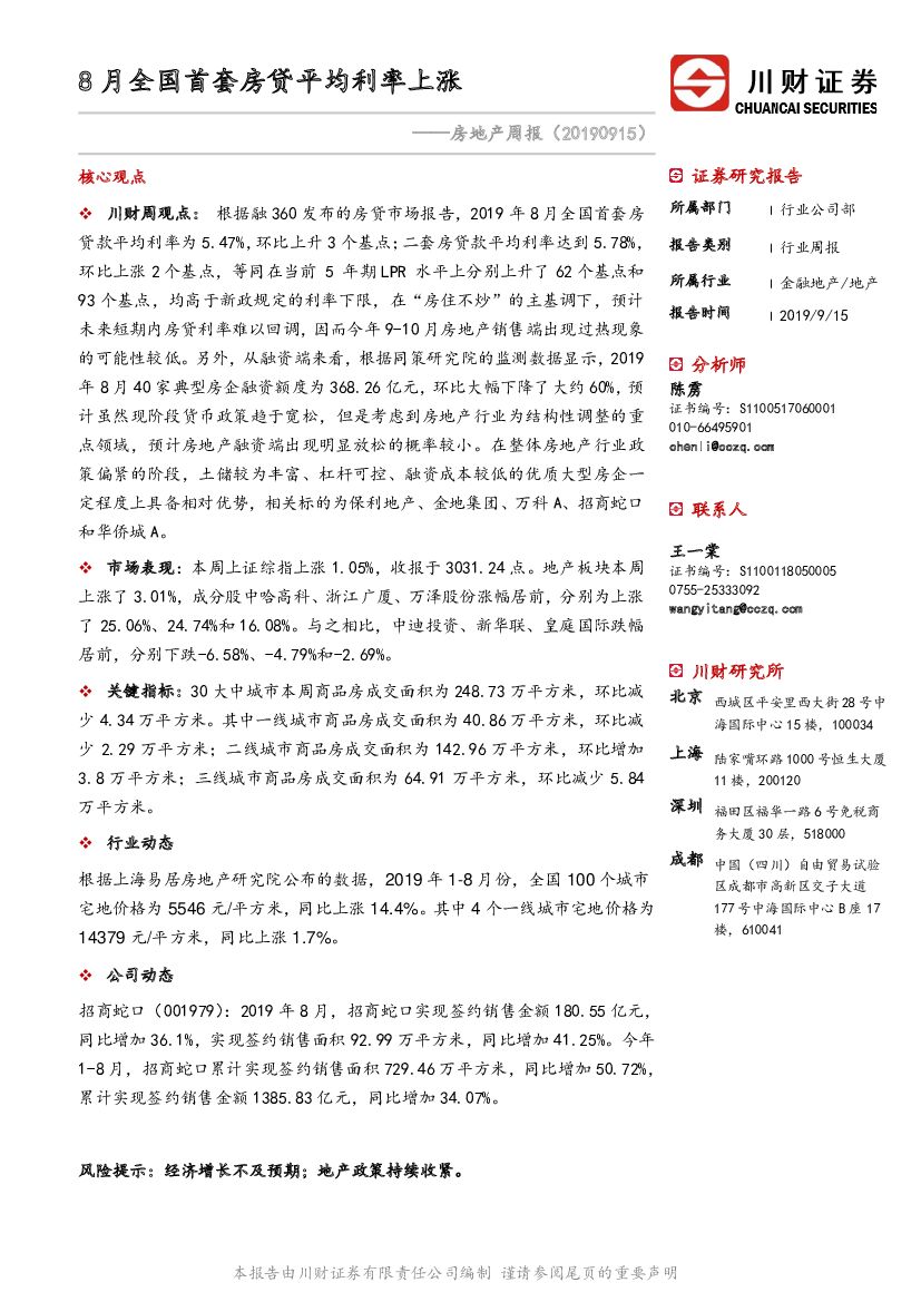 川财证券:房地产周报:8月全国首套房贷平均利率上涨.pdf