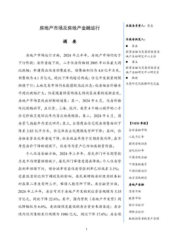 NIFD季报:房地产市场及房地产金融运行——2024年Q2房地产金融.pdf