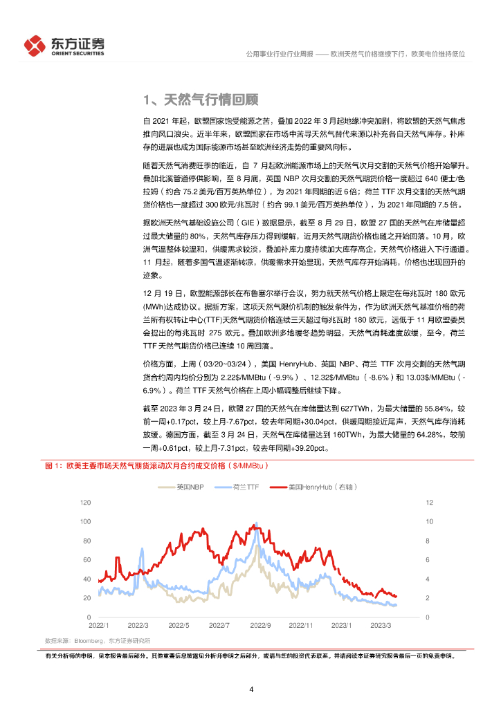 东方证券:公用事业行业欧美能源市场数据跟踪周报:欧洲天然气价格继续下行,欧美电价维持低位.pdf