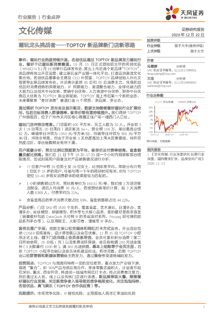天风证券:文化传媒行业点评:潮玩龙头挑战者——TOPTOY新品牌新门店新思路.pdf